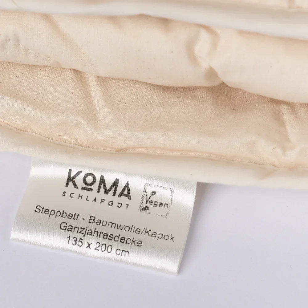 Die KOMA Schlafgut Kapok Bio Bettdecke vereint nachhaltige Naturmaterialien, hohen Komfort und umweltbewusste Herstellung für erholsame Nächte das ganze Jahr.