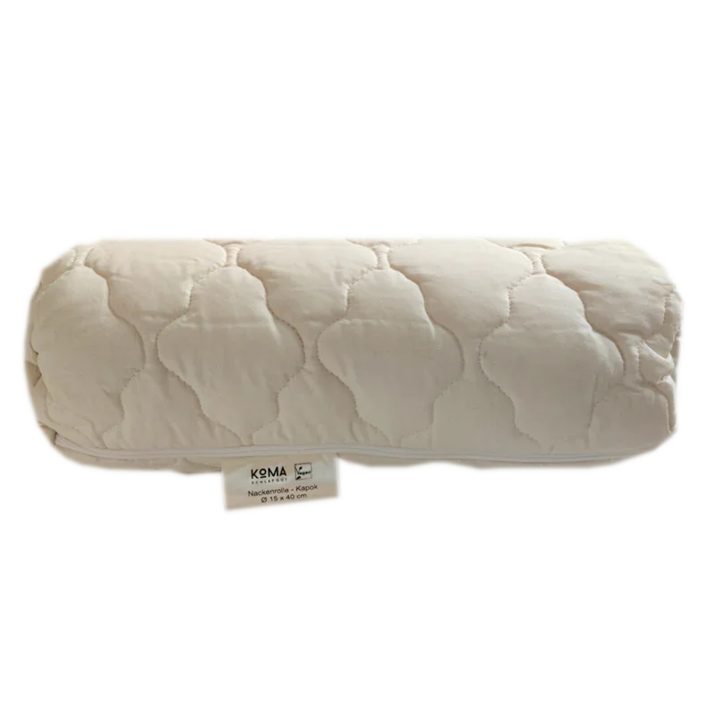 Eine Nackenrolle für gesunden Schlaf und verantwortungsbewussten Genuss – aus reiner Kapokfaser und Bio-Baumwolle, regional gefertigt.