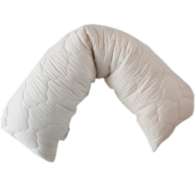 Maße: 40 x 140 cm, gefüllt mit 1600 g Kapok – ideal für Seitenschläfer und Stillkissen.