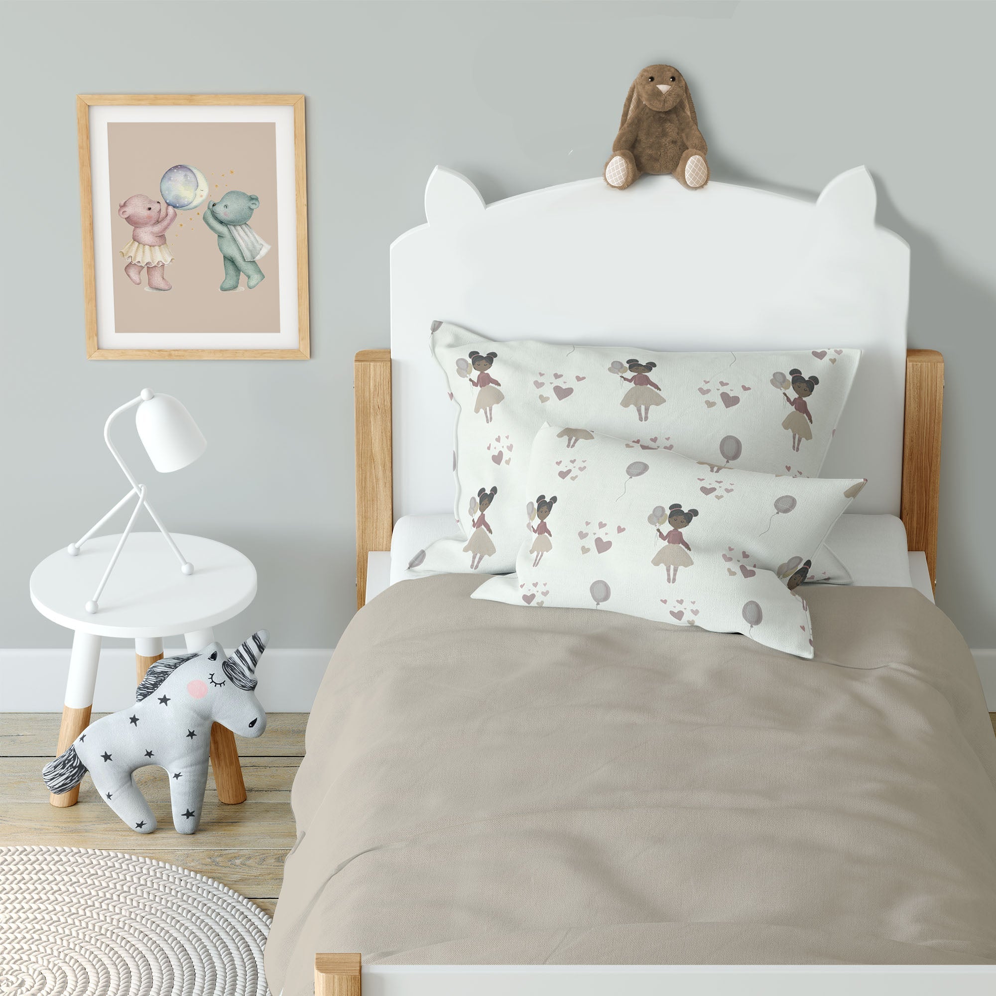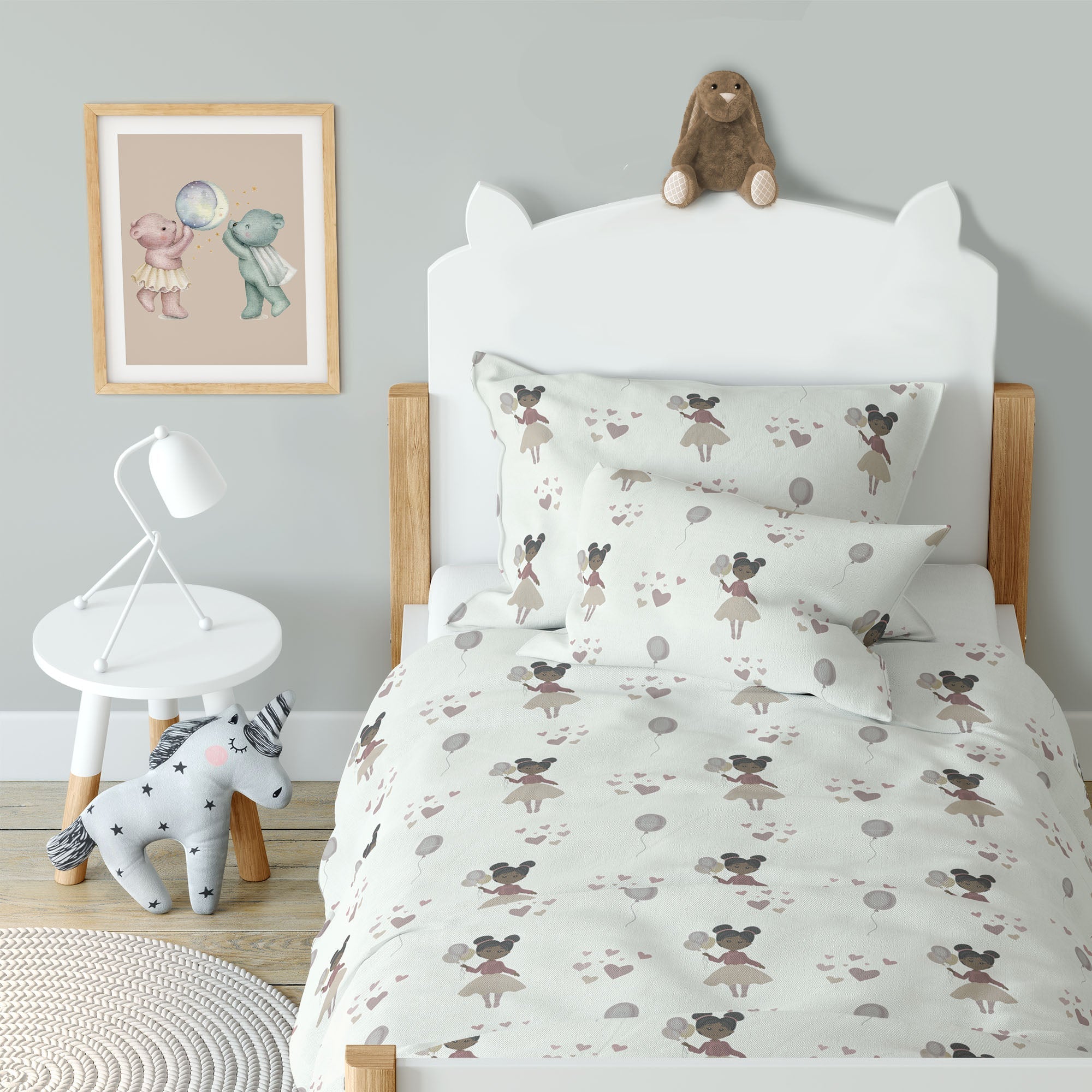 Handgemalte Elemente verleihen dem Design poetische Leichtigkeit und sorgen für eine liebevolle, geborgene Atmosphäre, in der sich kleine Prinzessinnen rundum wohlfühlen.