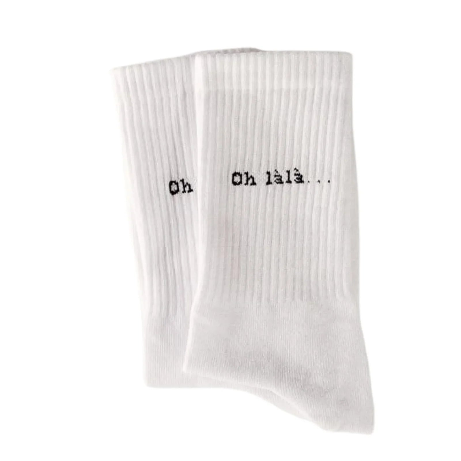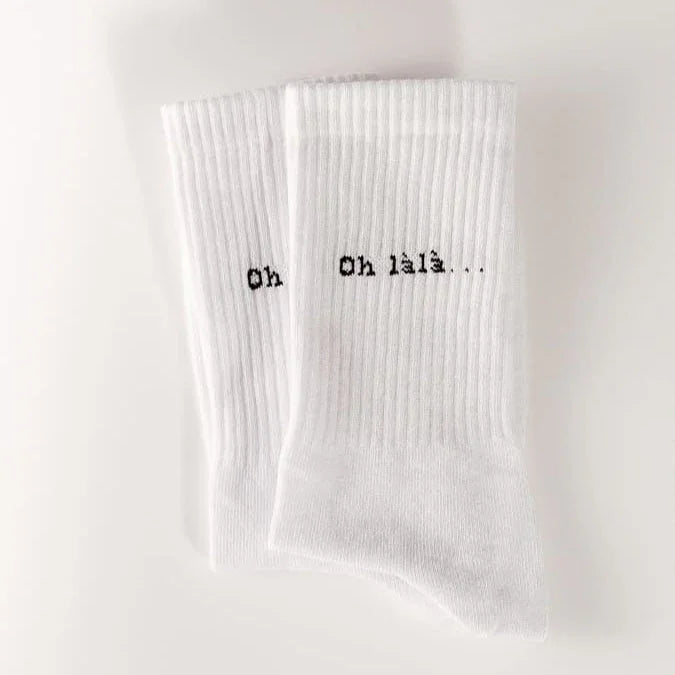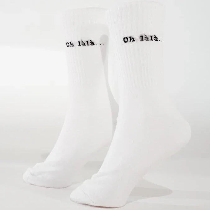Die „oh làlà...“ Socken sind der kleine Flirt unter den Alltagsbasics. Weißer Hintergrund, schwarze Schrift, minimalistisches Design – doch die Wirkung ist groß. Sie sind für alle, die mehr sagen wollen, ohne laut zu sein.