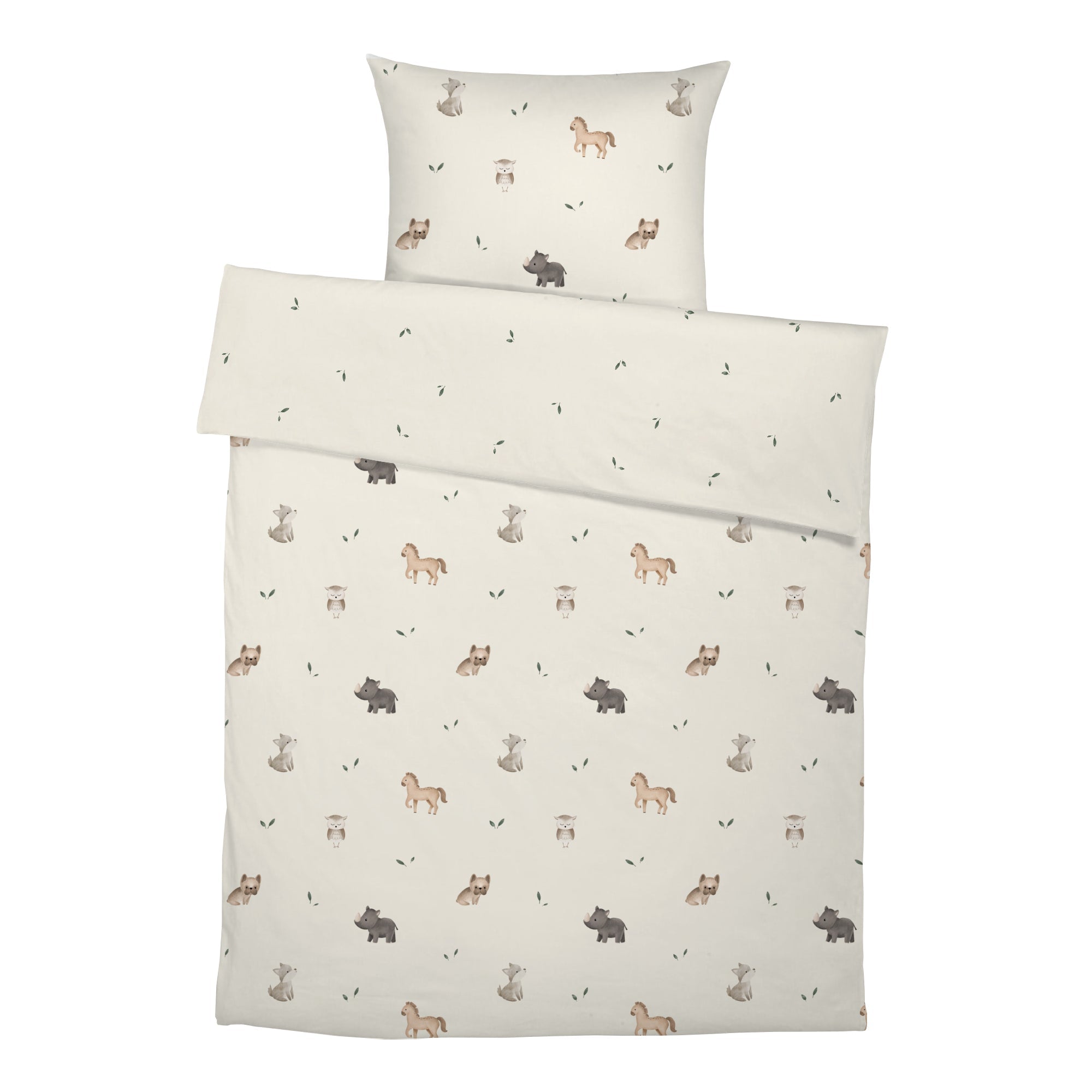 Die Oliven Farm Premium Kinderbettwäsche vereint zarte Olivenblätter mit fünf bezaubernden Tieren – Wolf, Eule, Hund, Nashorn und Pferd – und schafft eine atmungsaktive, weiche und sichere Schlafumgebung aus OEKO‑Tex 100 zertifizierter Baumwolle.