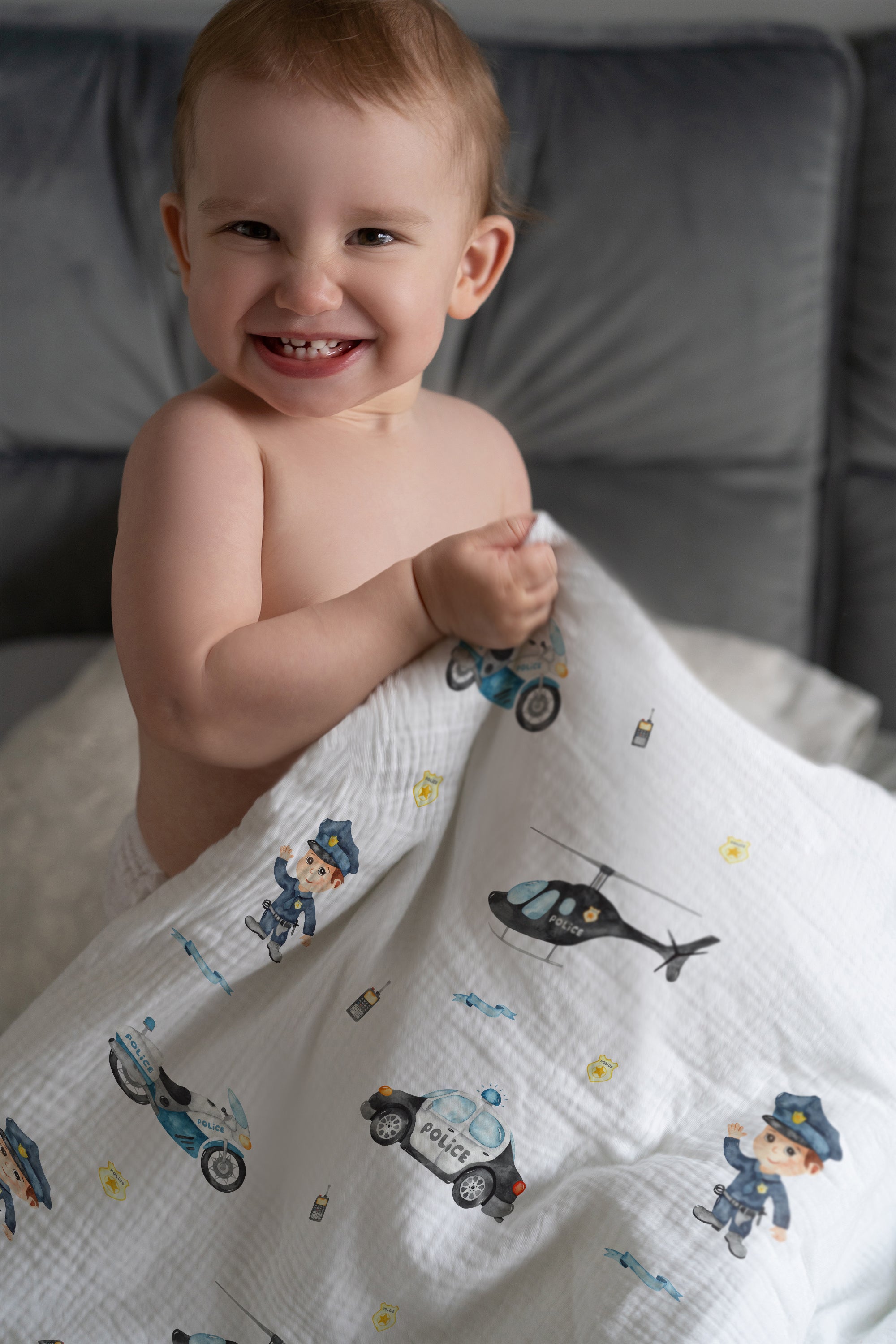 Die Leslis "Polizei" Premium Kinderbettwäsche bringt Blaulicht‑Abenteuer ins Kinderzimmer: Polizeiautos, mutige Polizist:innen und dynamische Szenen begeistern kleine Ordnungshüter mit Sinn für Gerechtigkeit.
