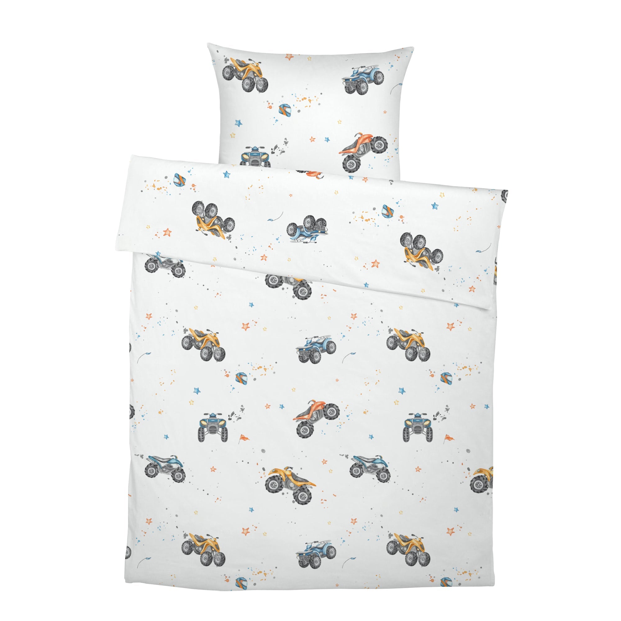 Das Kinderbettwäsche‑Set „Quads“ bringt Action ins Kinderzimmer: detailverliebte, handgemalte Quads versprühen Energie, Offroad‑Laune und pure Abenteuerlust.