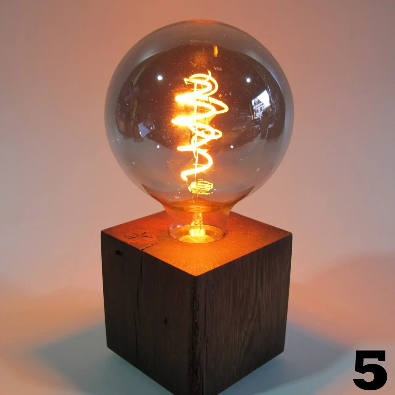 Die Skumring Nachttischlampe wird aus einem massiven Eichenbalken geschnitten, geschliffen, geölt und zu einem 10 × 10 cm großen Würfel verarbeitet. Jedes Stück ist ein handgefertigtes Unikat mit einzigartiger Maserung.