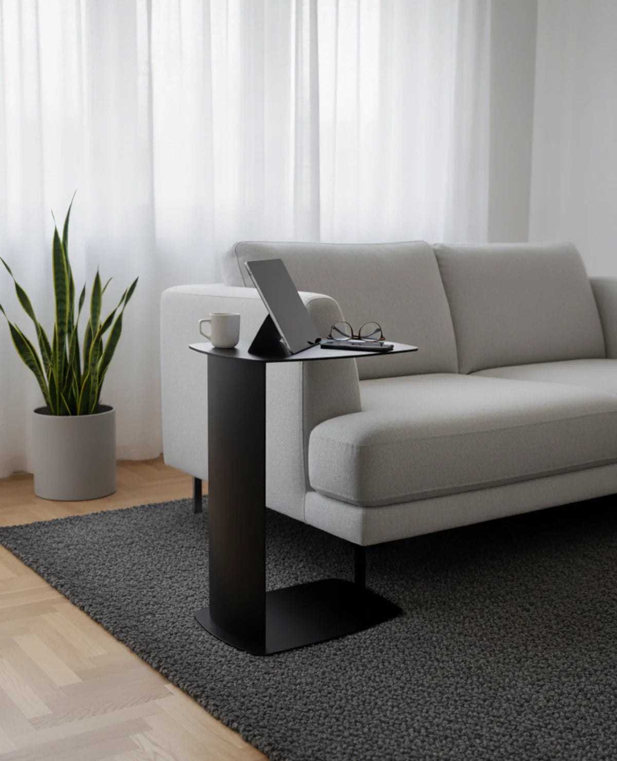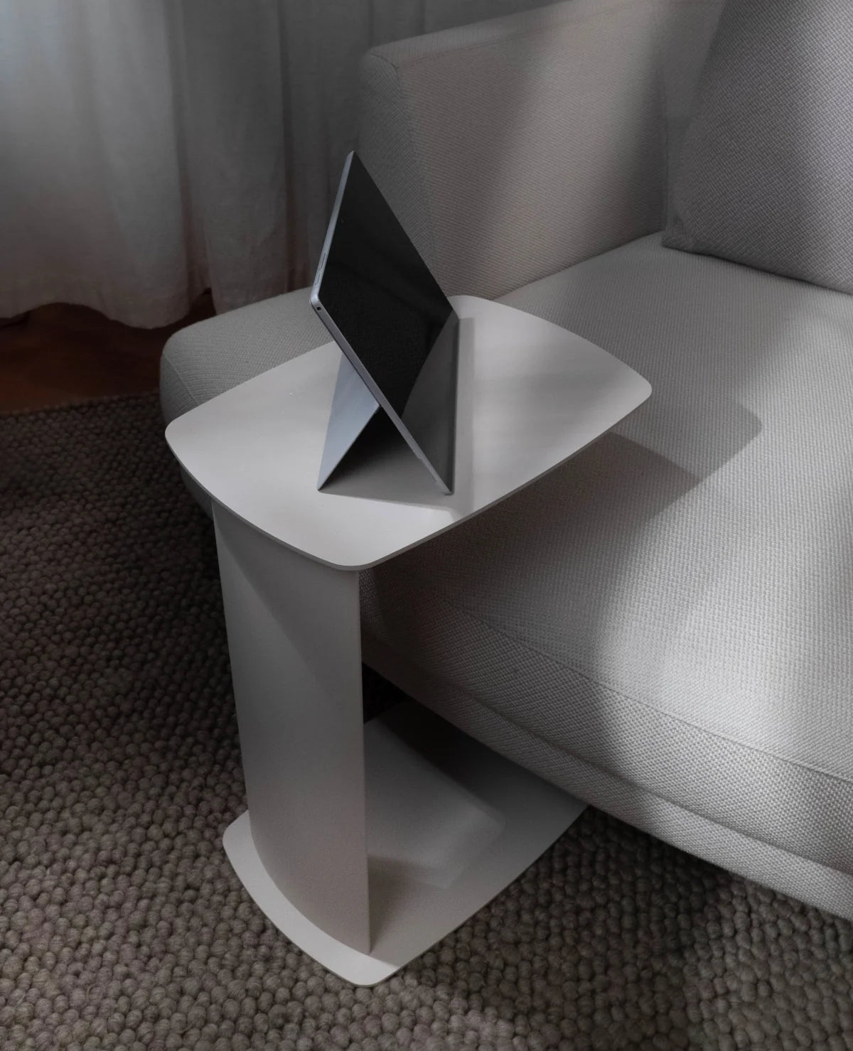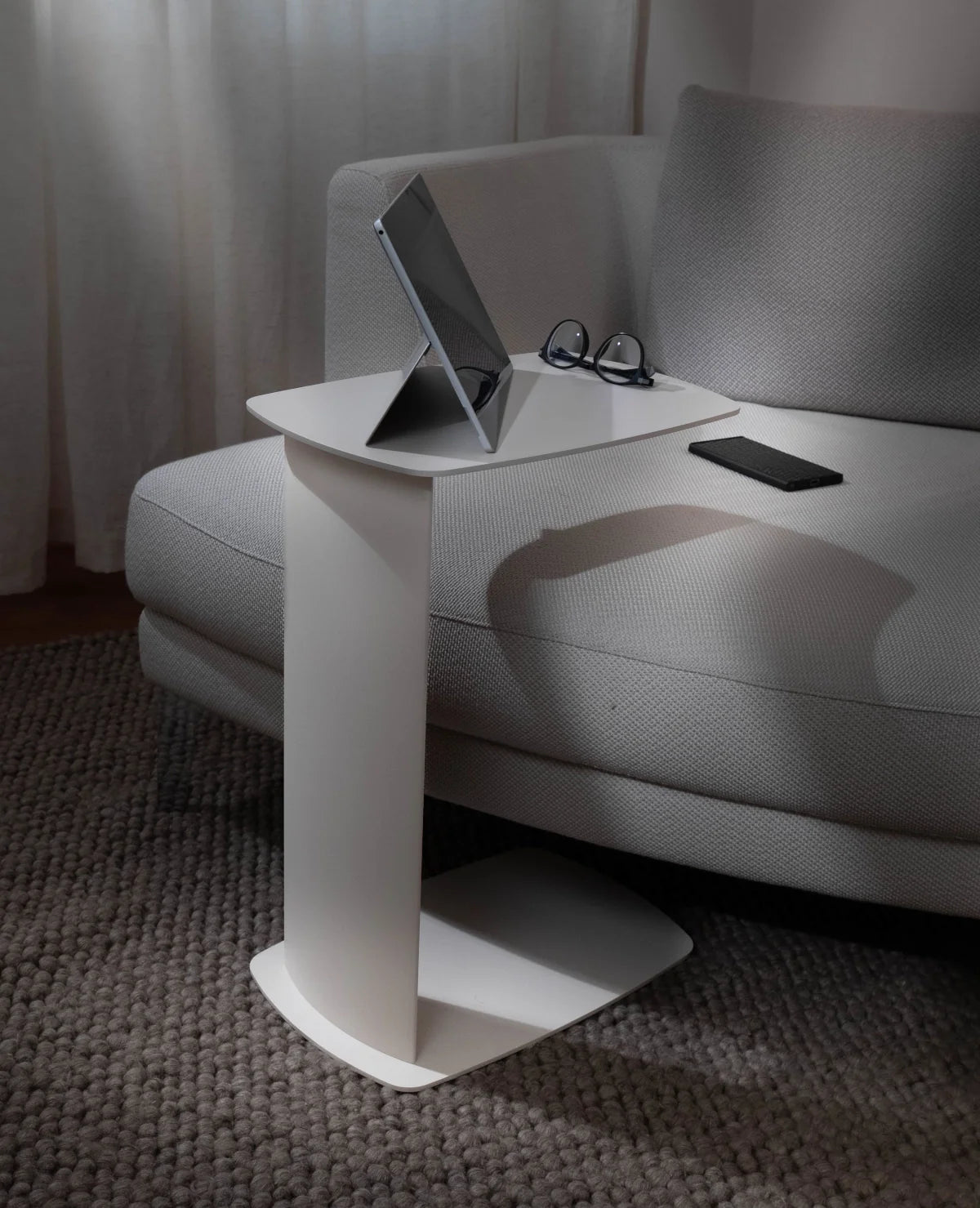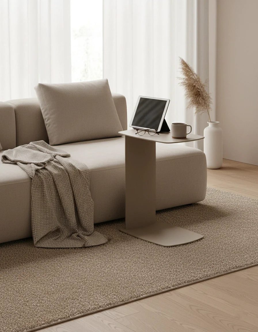 STANDBY ist der Beistelltisch, der dir überall zur Seite steht – ob beim Kaffee auf der Couch, beim Arbeiten am Laptop oder beim Lesen im Bett. Sein C-förmiges Design ermöglicht es, ihn elegant unter Möbel zu schieben, sodass er genau dort Platz findet, wo du ihn brauchst.