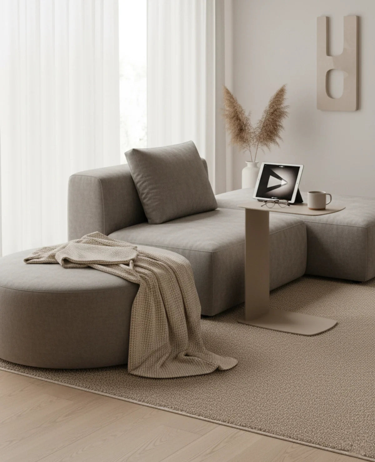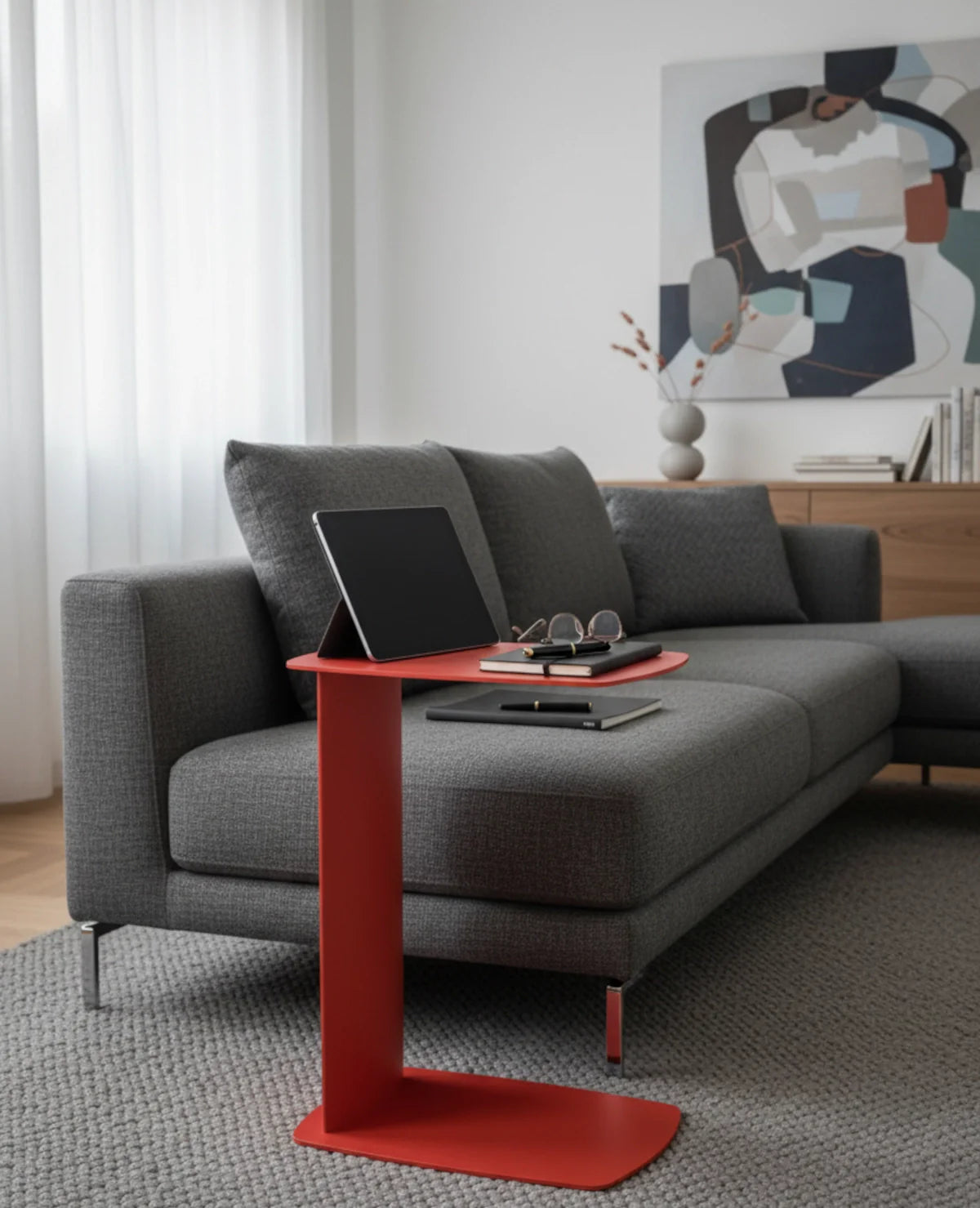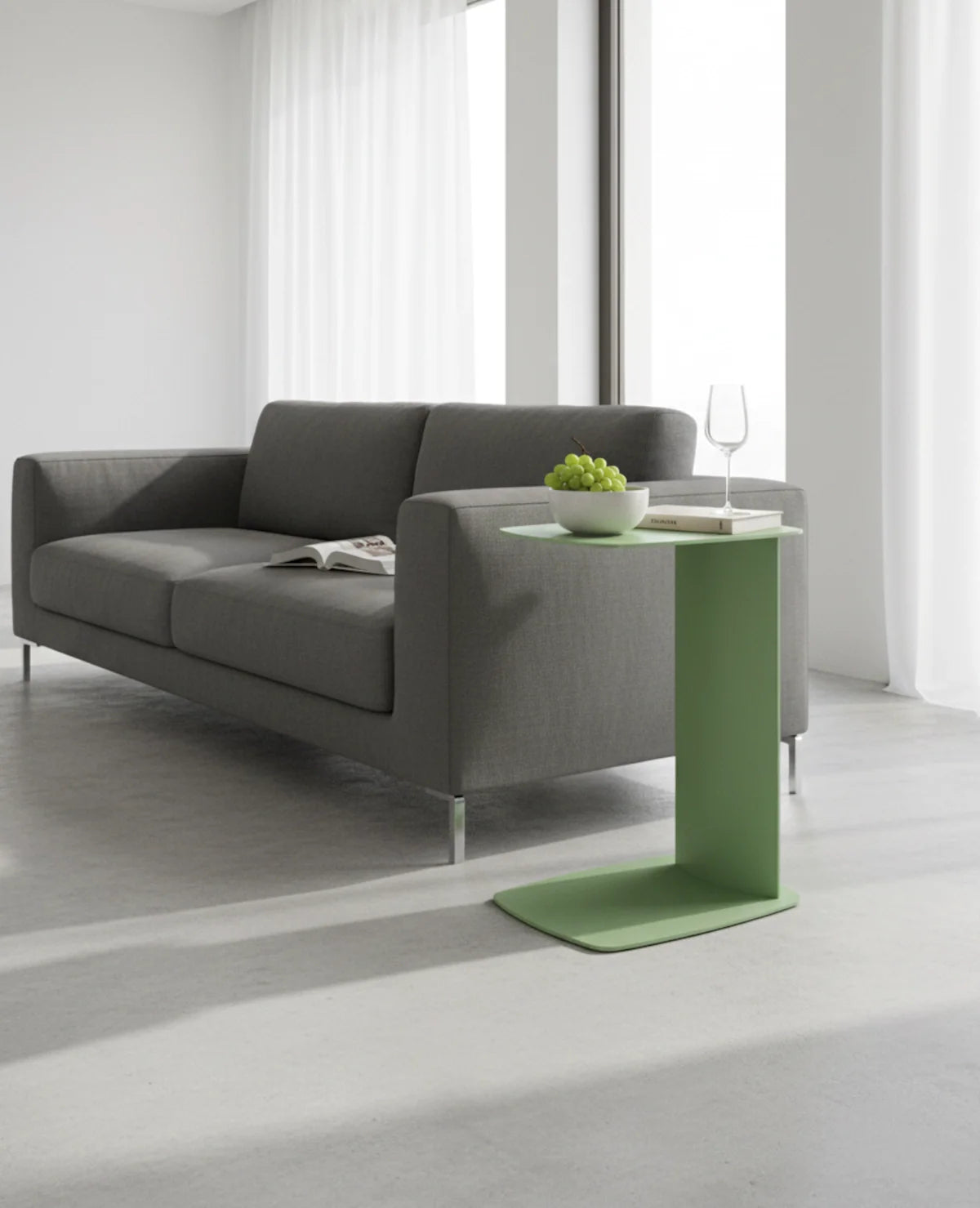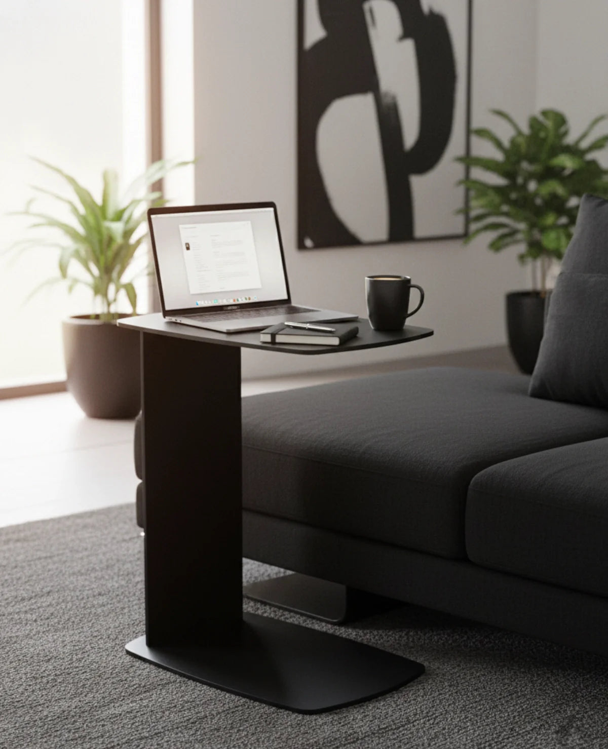 STANDBY ist der Beistelltisch, der dir überall zur Seite steht – ob beim Kaffee auf der Couch, beim Arbeiten am Laptop oder beim Lesen im Bett. Sein C-förmiges Design ermöglicht es, ihn elegant unter Möbel zu schieben, sodass er genau dort Platz findet, wo du ihn brauchst.