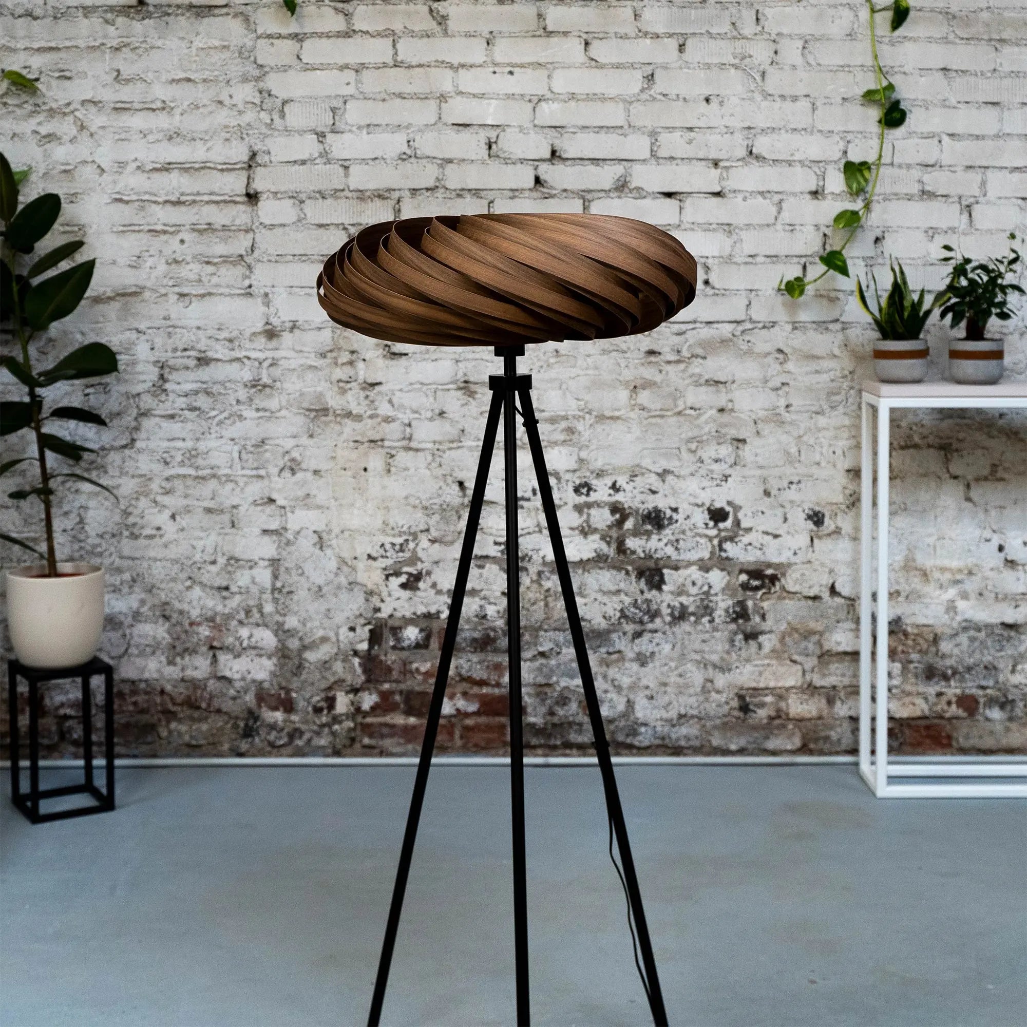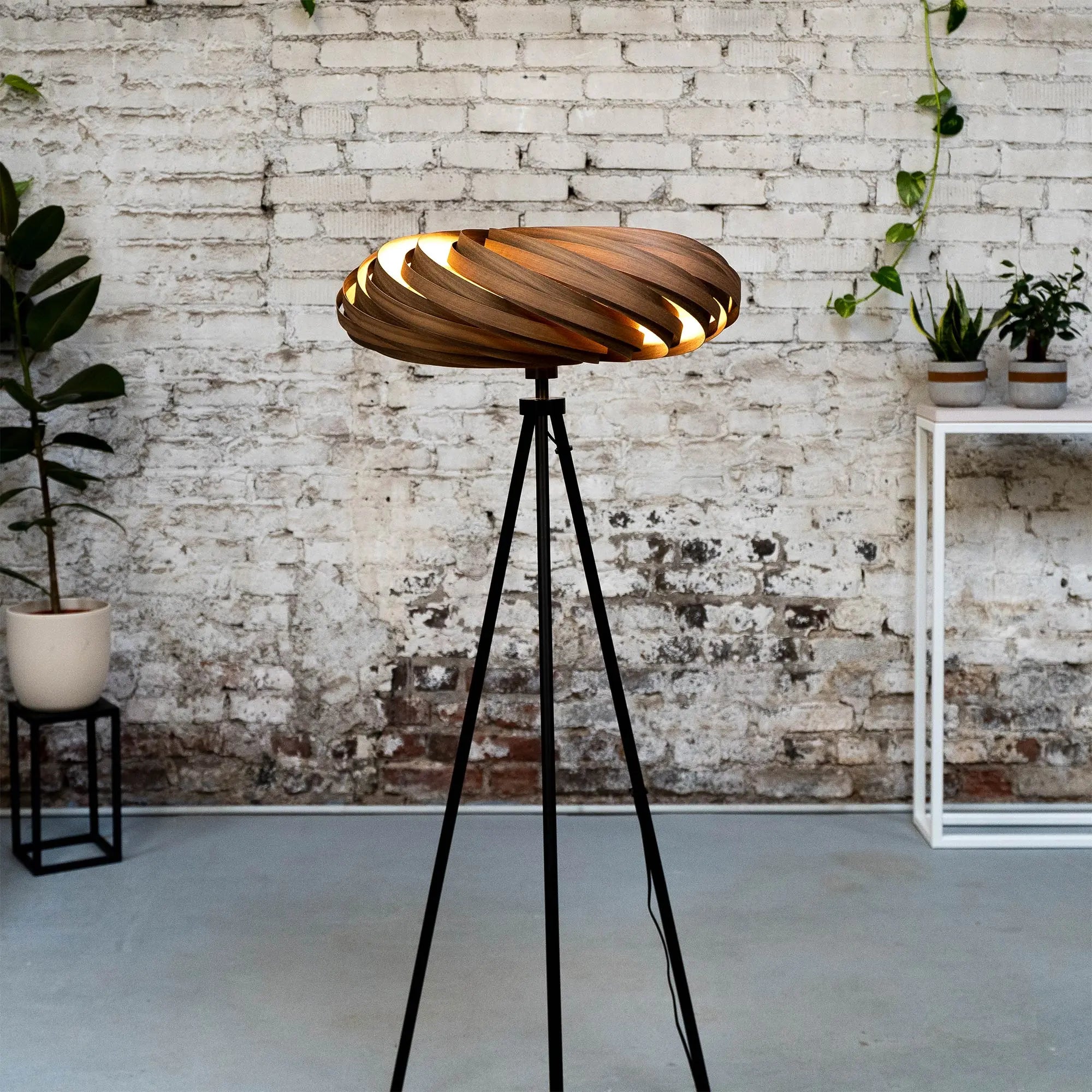 Die Veneria Stehleuchte aus Nussbaum ist ein harmonisches Zusammenspiel aus nachhaltigen Materialien, feiner Handarbeit und warmem Licht – perfekt für stilvolle Räume mit natürlicher Seele.