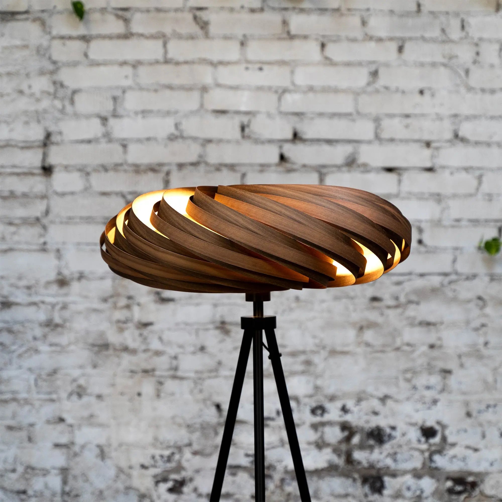 In Köln handgefertigt aus FSC-zertifiziertem Nussbaumholz und kombiniert mit einem matt-schwarzen Metallfuß, steht die Leuchte für Nachhaltigkeit und zeitlose Ästhetik. Das charaktervolle Holz entfaltet im Licht seine lebendige Struktur und bringt natürliche Wärme in jedes Ambiente.