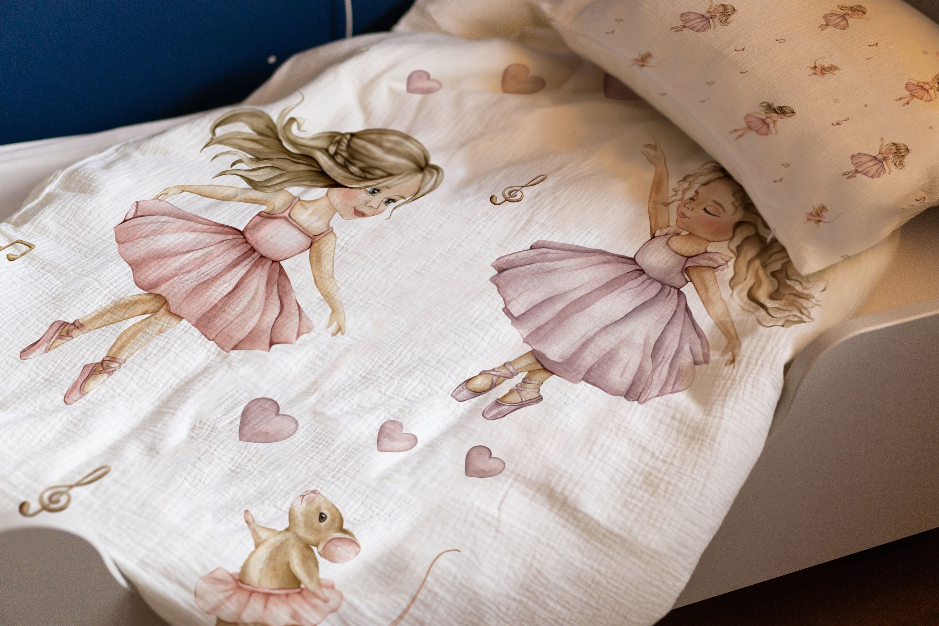 Die „Tänzerinnen“ Premium Kinderbettwäsche von Leslis zeigt elegante Posen und feine Details – eine behagliche Bühne für ruhige Träume und fantasievolle Geschichten.