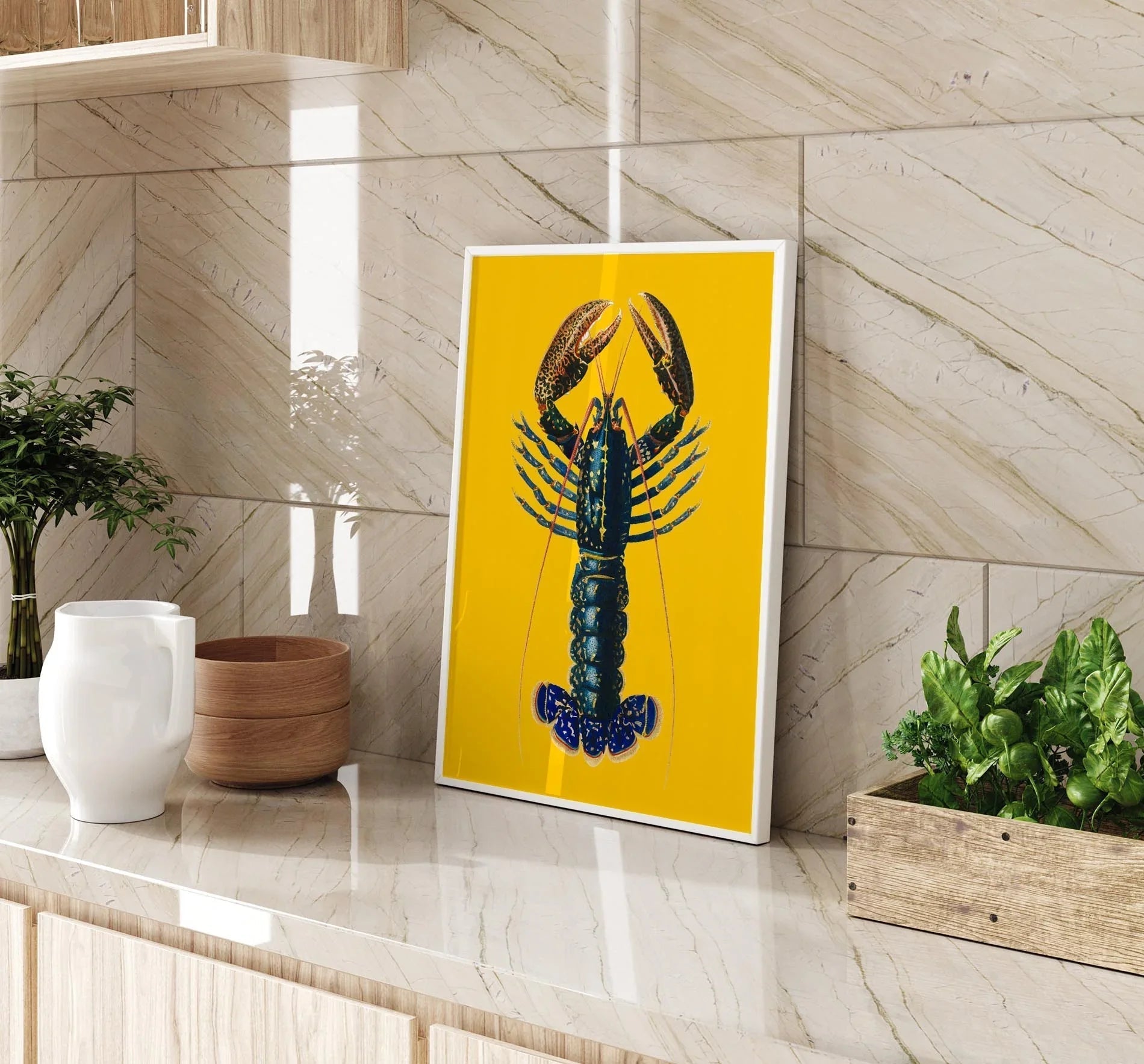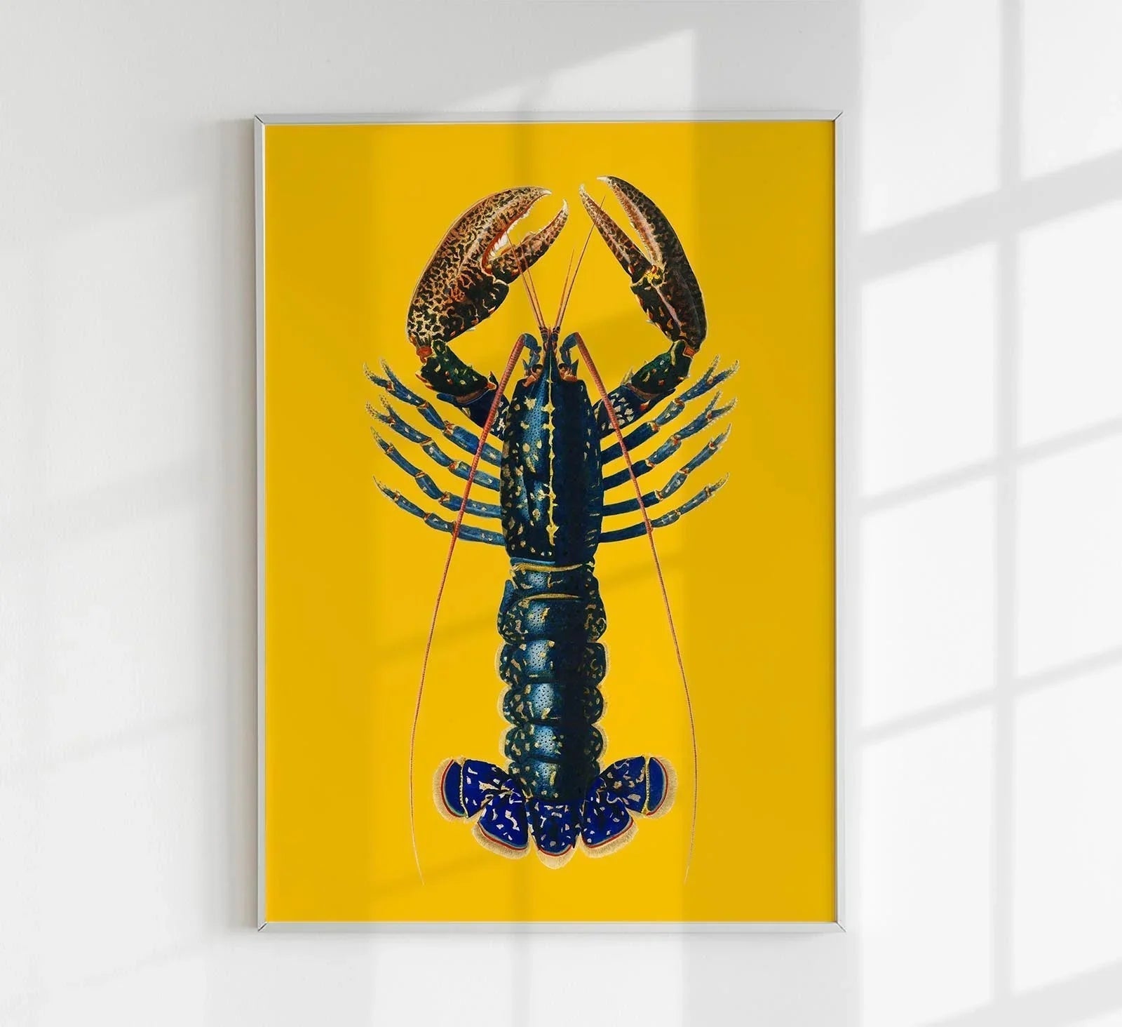 Das „The Yellow Lobster Poster“ bringt mit seinem ungewöhnlichen Farbspiel und maritimen Motiv frischen Wind an deine Wand.