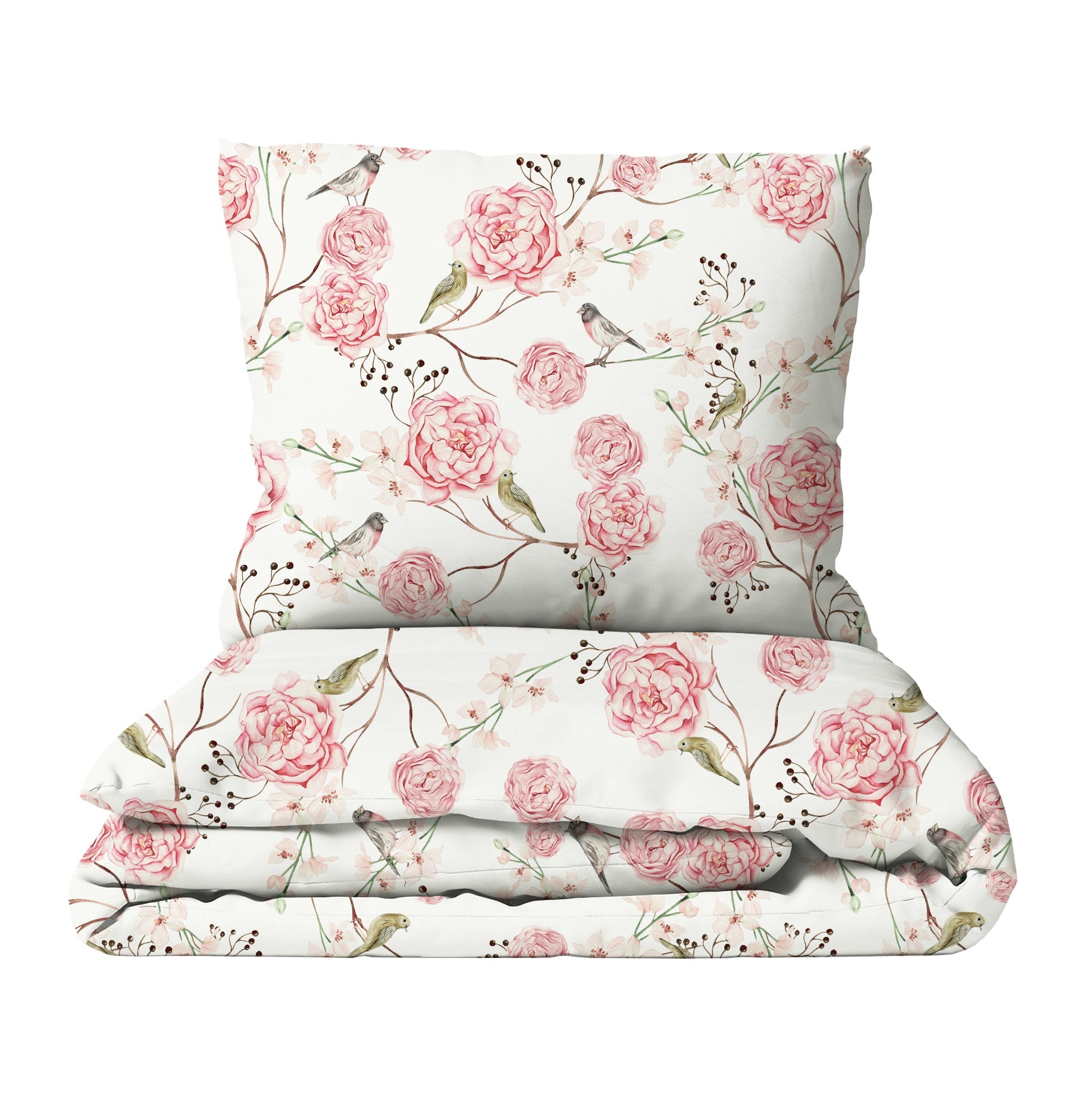 Vögel und Blumen Premium Kinderbettwäsche – Aquarellpoesie | OEKO‑Tex | Hautfreundlich