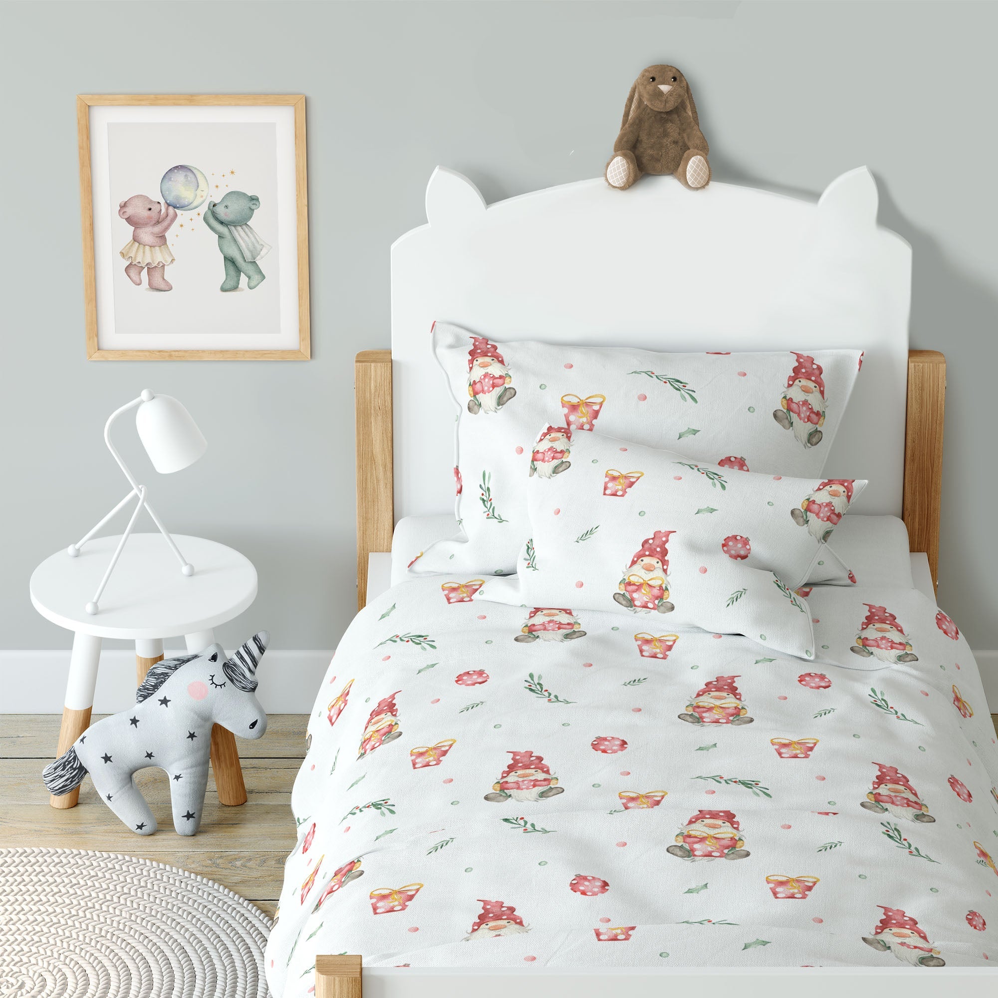 Das Kinderbettwäsche‑Set „Weihnachtself“ verzaubert mit einem fröhlichen Elf in leuchtendem Rot und sanften Aquarelltönen – für geborgene Winterträume mit weihnachtlicher Magie.