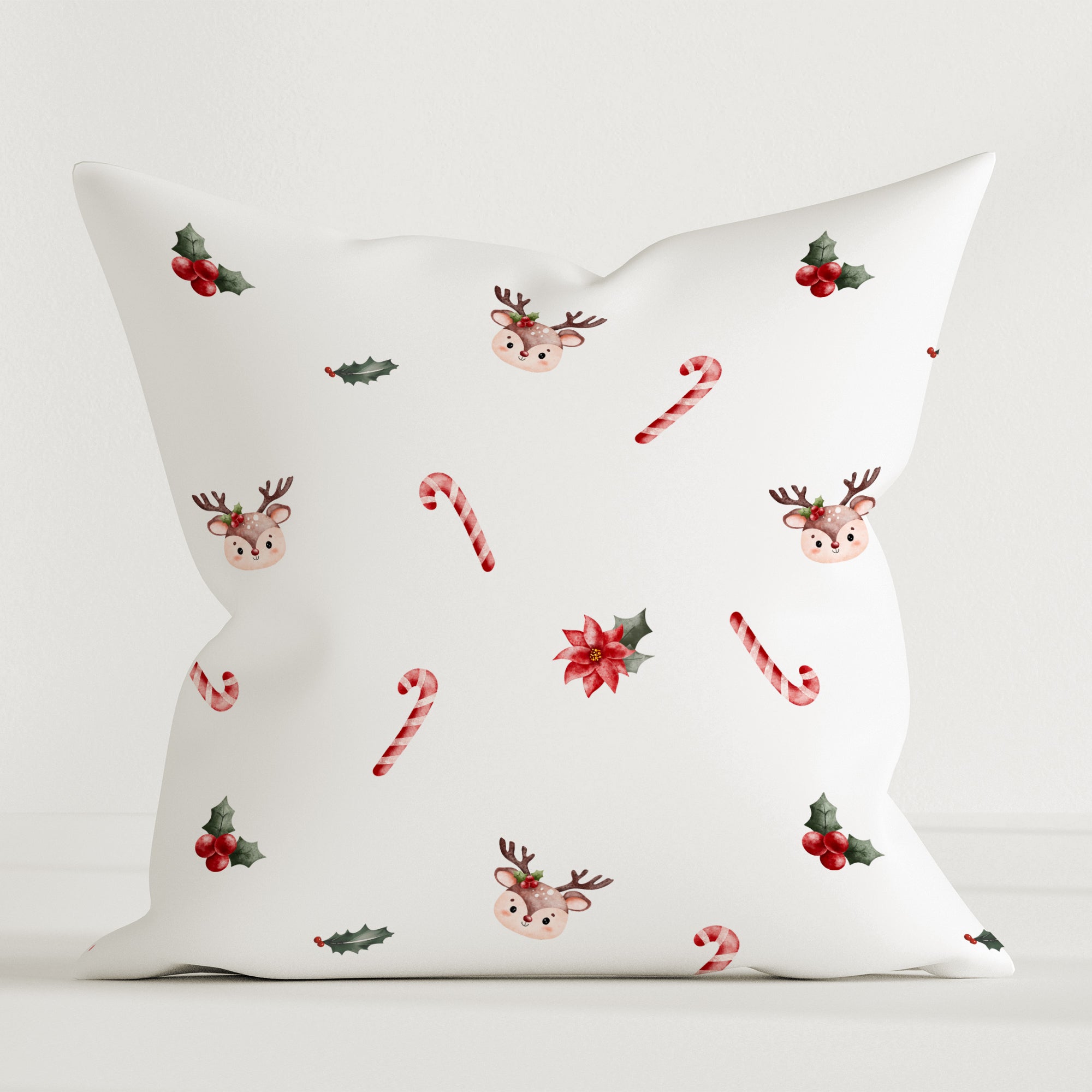 Zuckerstangen und Rehe Premium Dekokissen – Winterzauber | 40×40 cm | Baumwolle